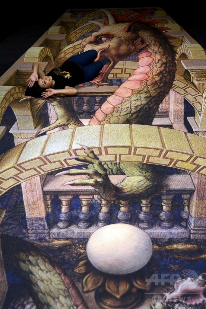 【4月8日 AFP】メキシコのプラヤ・デル・カルメン(Playa del Carmen)にある3Dトリックアート美術館「3D ミュージアム・オブ・ワンダー(3D Museum of Wonder)」で、米国のトリックアート作家カート・ウェナー(Kurt Wenner)さんの作品が展示されている。来場者はあたかも絵に描かれた場面に遭遇しているかのようなポーズを取り、作品を楽しんだ。