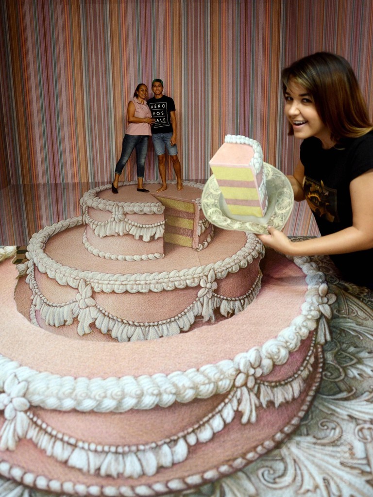 【4月8日 AFP】メキシコのプラヤ・デル・カルメン(Playa del Carmen)にある3Dトリックアート美術館「3D ミュージアム・オブ・ワンダー(3D Museum of Wonder)」で、米国のトリックアート作家カート・ウェナー(Kurt Wenner)さんの作品が展示されている。来場者はあたかも絵に描かれた場面に遭遇しているかのようなポーズを取り、作品を楽しんだ。