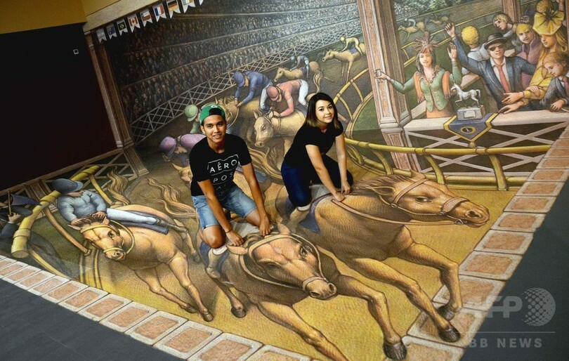 【4月8日 AFP】メキシコのプラヤ・デル・カルメン(Playa del Carmen)にある3Dトリックアート美術館「3D ミュージアム・オブ・ワンダー(3D Museum of Wonder)」で、米国のトリックアート作家カート・ウェナー(Kurt Wenner)さんの作品が展示されている。来場者はあたかも絵に描かれた場面に遭遇しているかのようなポーズを取り、作品を楽しんだ。
