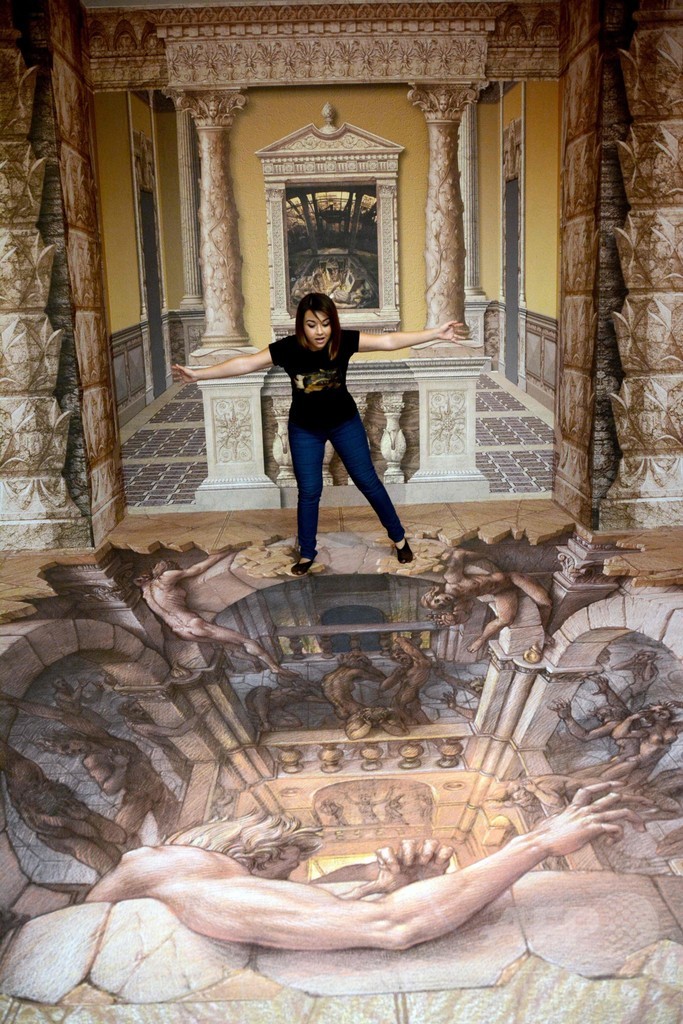 【4月8日 AFP】メキシコのプラヤ・デル・カルメン(Playa del Carmen)にある3Dトリックアート美術館「3D ミュージアム・オブ・ワンダー(3D Museum of Wonder)」で、米国のトリックアート作家カート・ウェナー(Kurt Wenner)さんの作品が展示されている。来場者はあたかも絵に描かれた場面に遭遇しているかのようなポーズを取り、作品を楽しんだ。