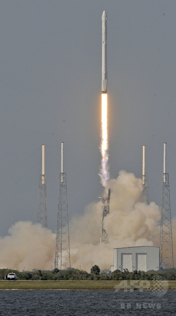 【4月9日 AFP】(更新、写真追加)米宇宙開発企業スペースX(SpaceX)は8日、国際宇宙ステーション(ISS)に滞在する宇宙飛行士用の貨物を搭載した「ファルコン9(Falcon 9)」を打ち上げ、ロケットの第1段機体を洋上の台船に着陸させることに初めて成功した。