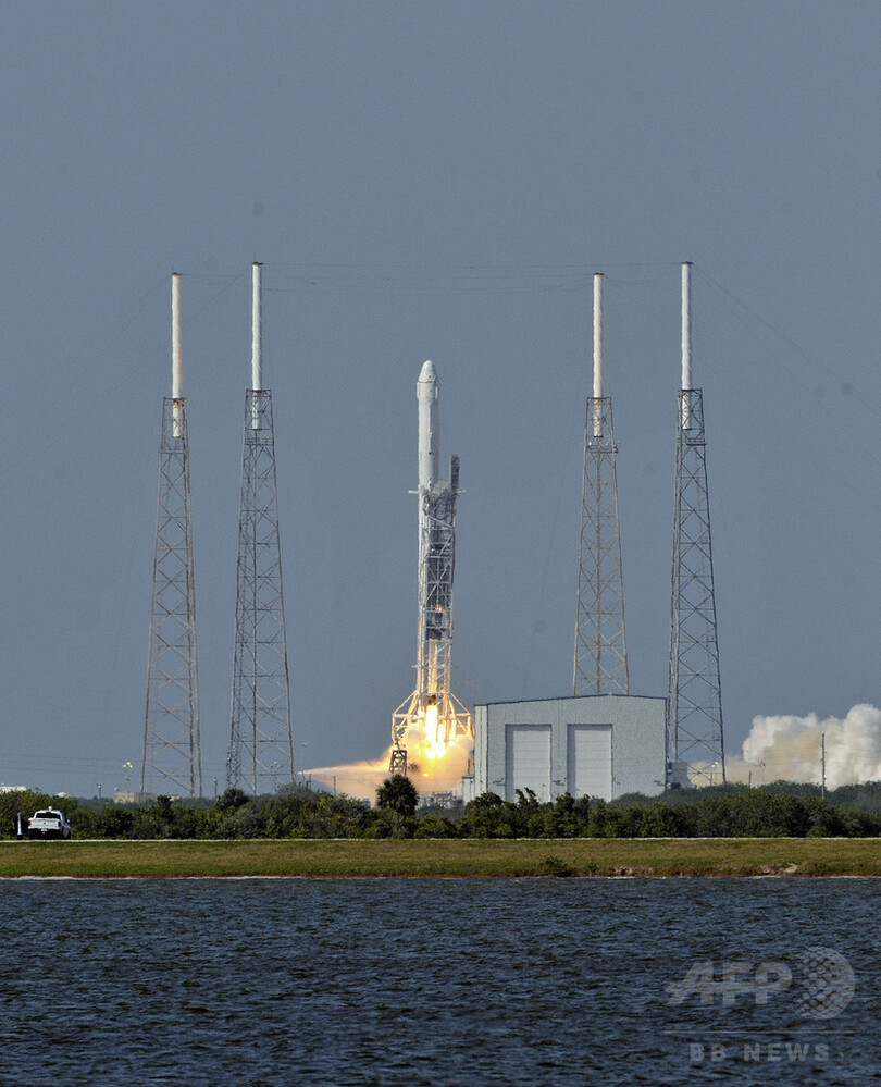 【4月9日 AFP】(更新、写真追加)米宇宙開発企業スペースX(SpaceX)は8日、国際宇宙ステーション(ISS)に滞在する宇宙飛行士用の貨物を搭載した「ファルコン9(Falcon 9)」を打ち上げ、ロケットの第1段機体を洋上の台船に着陸させることに初めて成功した。