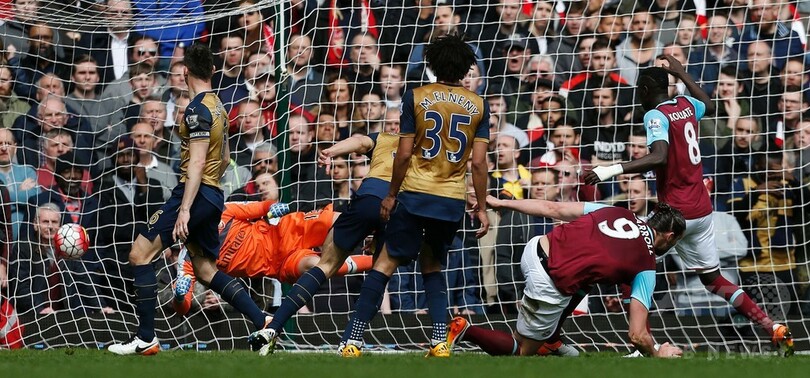 【4月10日 AFP】15-16イングランド・プレミアリーグは9日、第33節の試合が行われ、序盤に2点を先制したアーセナル(Arsenal)は、ウェストハム(West Ham)のアンディ・キャロル(Andy Carroll)にハットトリックを許すも、ローラン・コシールニー(Laurent Koscielny)のゴールで3-3の引き分けに持ち込んだ。