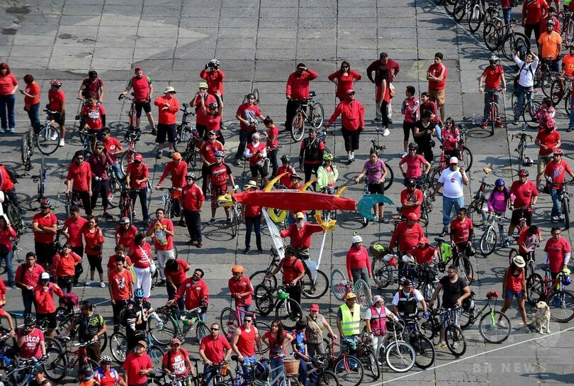 数千人で作る「巨大自転車」、世界自転車デー メキシコ市