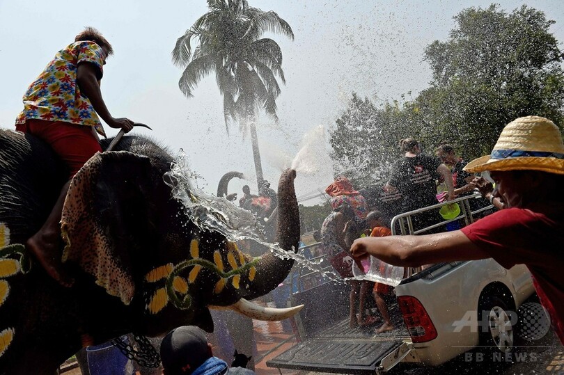 ニュース ライフ お水かけちゃうゾウ!水掛け祭りでゾウと「水合戦」 タイ 2016年4月12日 17:54 発信地:アユタヤ/タイ [ アジア・オセアニア タイ ] このニュースをシェア ‹ › ❮ 6/10 ❯ タイ・バンコク北部のアユタヤで、タイの旧正月にあたる「ソンクラーン」を祝って、ゾウとの「水合戦」に興じる人々(2016年4月11日撮影)。(c)AFP/CHRISTOPHE ARCHAMBAULT 画像作成中 ! 【4月12日 AFP】タイ・バンコク(Bangkok)北方のアユタヤ(Ayutthaya)で11日、ゾウと「水合戦」に興じる人々。 タイの旧正月にあたる「ソンクラーン」の水掛け祭りは、同国各地で4月13日前後の数日間に行われ、水を掛け合って新年を祝う。(c)AFP ライフ 一覧へ> メディア・報道関係・法人の方向け 写真・動画 購入のお問合せ>