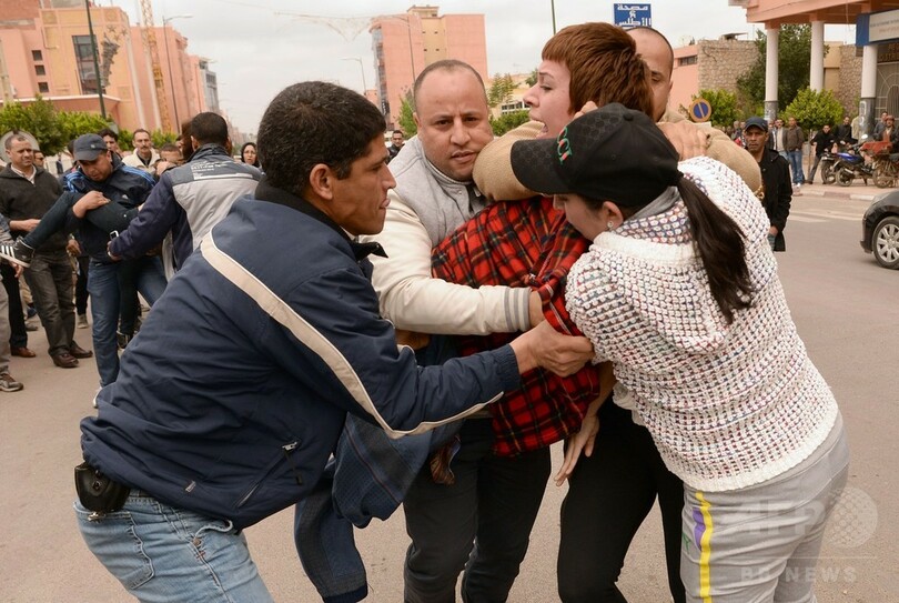 【4月12日 AFP】同性愛が法律で禁じられているモロッコで11日、同性愛行為の罪で有罪判決を受けていた男性カップルと、カップルを襲撃したとされる男らに対する控訴審の公判があった。裁判所の外では同性愛を犯罪としないよう求めてウクライナの女性権利団体「FEMEN」の仏人メンバー2人がトップレスで抗議し、警察に拘束される騒ぎも起きた。