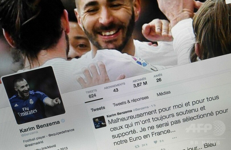 ベンゼマはツイッター(Twitter)アカウントで、「自分や、自分を支えてくれた人には残念なことですが、欧州選手権に臨むフランス代表には招集されないことになりました」と述べた。