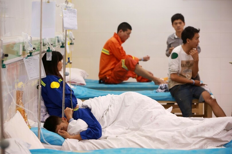新華社が同市当局者の話として伝えたところによると、当時、現場は激しい雷雨だった。クレーンが、運送用コンテナでできた2階建ての仮設の建物に落下したという。建物の中には139人の作業員がいた。負傷者のうち4人は、深刻だが安定した容体だとされる。消防士によれば、クレーンの重さは約80トンだった。(c)AFP
