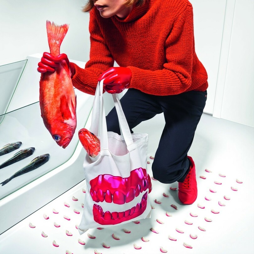 ファッション界と初コラボ・シリーズ第1弾となる同コレクションは、ケイティならではの個性的で意表をつくデザインが特徴。テーブルウェアとホームテキスタイル約30点のアイテムで構成し、魚や目玉、猫などをデジタルプリントでリアルに描いた食器やテーブルクロス、クッションカバー、ベッドリネンなどが揃う。また、脳や入れ歯モチーフのエプロンやトレーは、パーティを刺激的かつユニークに盛り上げること間違いなし。「もっとラウドな生き方へ」というメッセージが込められたコレクションは日々の暮らしをスパイスアップしてくれそうだ。
