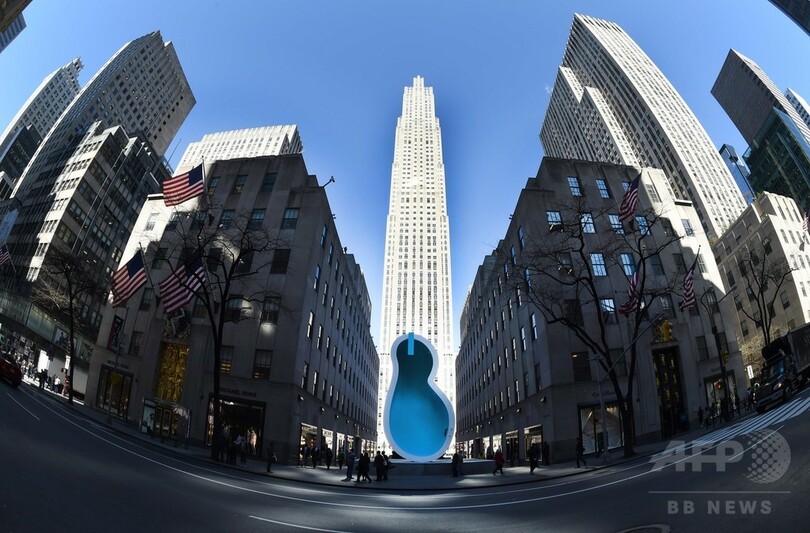 【4月14日 AFP】米ニューヨーク(New York)にあるロックフェラーセンター(Rockefeller Center)に13日、高さ9メートルのプールを模したオブジェがお目見えした。
