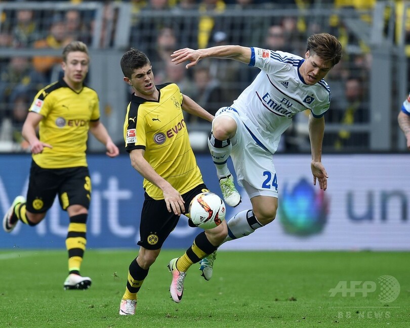 【4月18日 AFP】15-16ドイツ・ブンデスリーガ1部は17日、第30節の試合が行われ、ボルシア・ドルトムント(Borussia Dortmund)は米国出身の10代クリスティアン・プリシッチ(Christian Pulisic)がリーグ戦初得点を記録するなど、退場者を出したハンブルガーSV(Hamburger SV)を3-0で退けた。