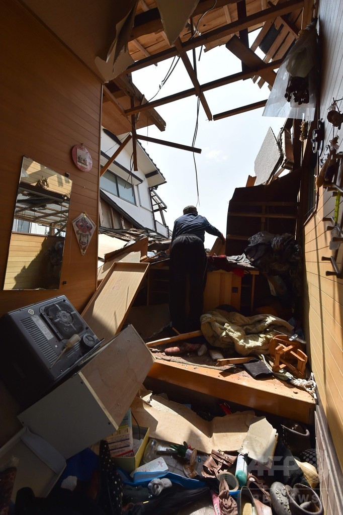 【4月19日 AFP】(更新)14日以降、500回以上の地震が続いている熊本県で最大震度7を観測した益城(Mashiki)町では各所で家屋などが倒壊している。