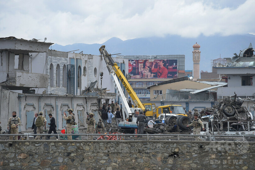 【4月19日 AFP】(更新、写真追加)アフガニスタンの首都カブール(Kabul)中心部で19日に起きた旧支配勢力タリバン(Taliban)によるトラックを使った自爆攻撃の死者は、少なくとも30人に上っている。警察発表によれば死者の大半は民間人だという。