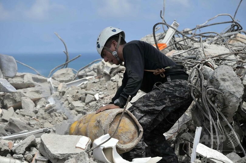 がれきの中から救出された生存者らもいると報じられているが、19日夜には生存率が急激に下がるとされる72時間の壁を迎えることから、今後生存者が見つかる見込みは低くなっている。地震により約800棟の建物が倒壊したが、現地では不明者捜索の手が行き届いておらず、住民らの間では救援活動の遅れに対する怒りの声も広がっている。(c)AFP/Florence PANOUSSIAN