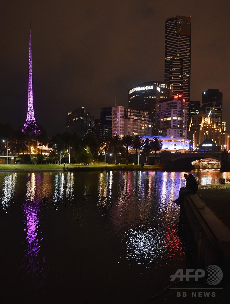 ロサンゼルス(Los Angeles)では市庁舎が、豪メルボルンではビクトリア・アート・センター(Victoria Arts Centre)が、プリンスさんを追悼するため、紫色にライトアップされた。(c)AFP