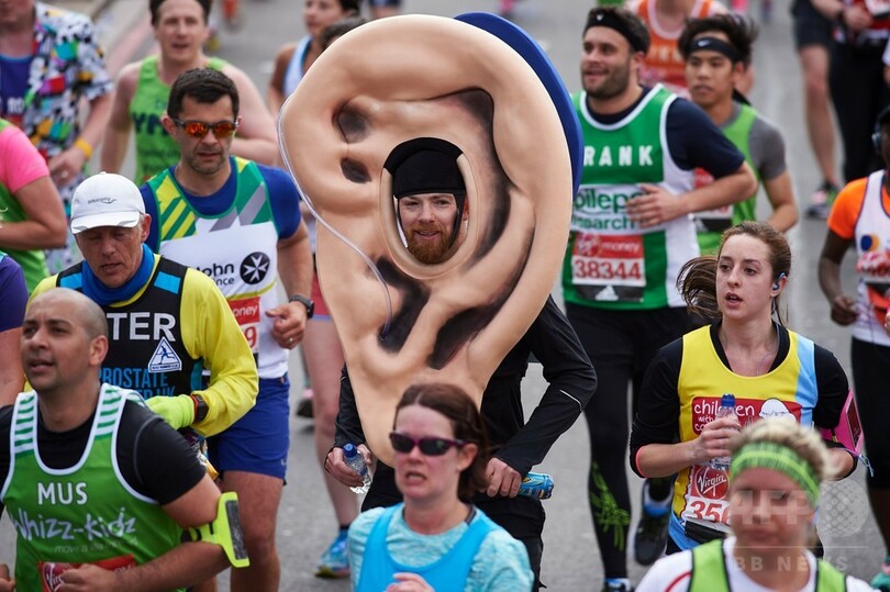 耳、キリスト、ビールまで!? ユニークな仮装でマラソン 英
