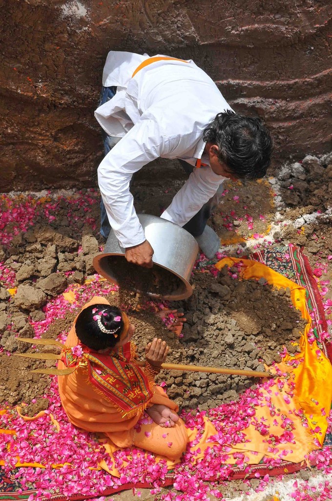 女性の修行者らはガンジス川のそばに墓を掘り、サフラン色の衣服と数珠を身に着けた指導者マハント・トリカル・ババンタ(Mahant Trikal Bhavanta)氏が、生き埋めになるために墓穴へ入った。支持者たちが土や花びらを投げ入れ、ババンタ氏が腰まで埋もれたところで、警察官と地元当局者によって止められたという。
