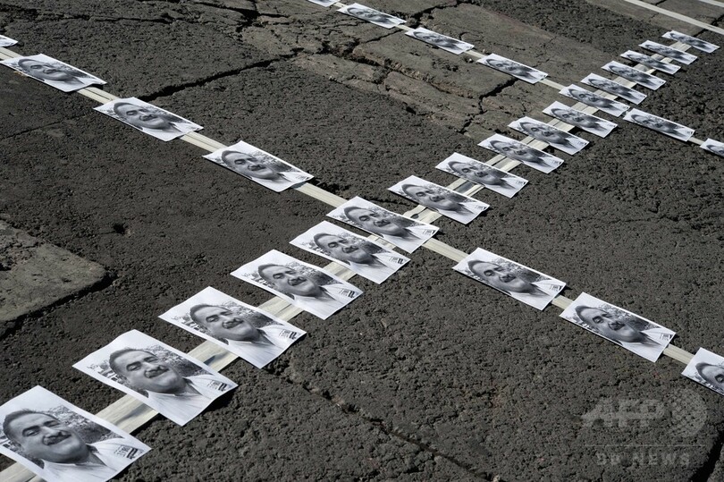 【4月28日 AFP】メキシコの首都メキシコ市(Mexico City)のソカロ広場(Zocalo Square)で27日、新聞社の創業者で編集者のフランシスコ・パチェコ(Francisco Pacheco)氏が殺害された事件を受け、同僚やフォトジャーナリストたちが大聖堂前にパチェコ氏の写真を並べて抗議活動を行った。