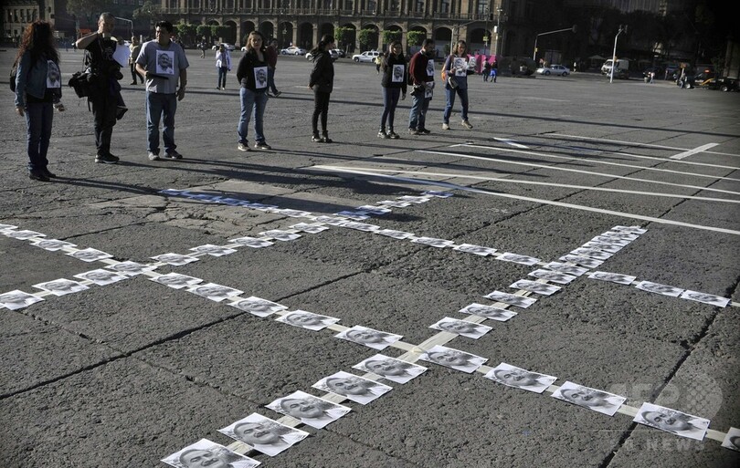 【4月28日 AFP】メキシコの首都メキシコ市(Mexico City)のソカロ広場(Zocalo Square)で27日、新聞社の創業者で編集者のフランシスコ・パチェコ(Francisco Pacheco)氏が殺害された事件を受け、同僚やフォトジャーナリストたちが大聖堂前にパチェコ氏の写真を並べて抗議活動を行った。