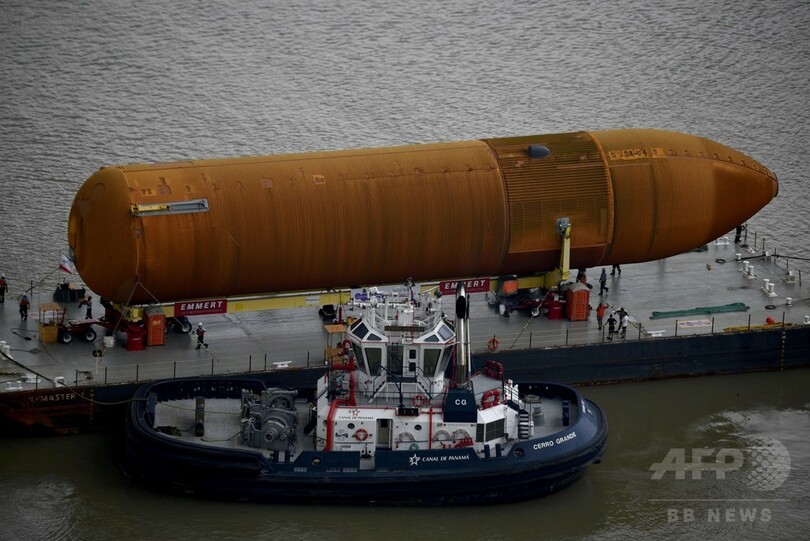 【4月29日 AFP】米航空宇宙局(NASA)が保有する最後のスペースシャトル外部燃料タンクを運ぶタグボートと荷船が26日、パナマの首都パナマ市(Panama City)にあるパナマ運河(Panama Canal)を通過した。
