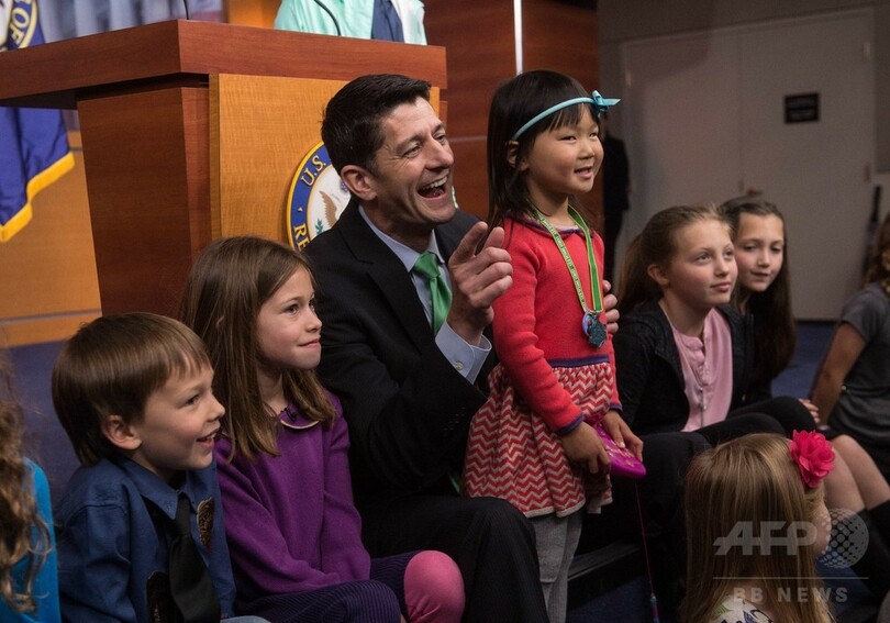 また同日は、ポール・ライアン(Paul Ryan)下院議長も、ワシントンで開かれた定例会見の後、記者たちの子どもたちとなごやかに記念撮影に応じる場面も見られた。(c)AFP