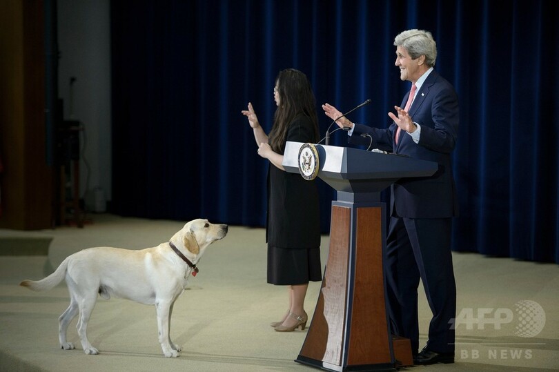 9歳の女の子が「(長官を世界中に運ぶ専用機の)飛行機にはベッドなどはありますか」と質問すると、愛犬のベン(Ben)を伴って登壇したケリー氏は「これは痛烈な質問から始まったね。ベッドはあるよ。たった1つだけどね。だれが使うか見当がつくと思うけど」と答えた。