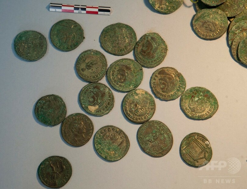 古代ローマ皇帝のマクシミアヌス(Maximianus)とコンスタンティヌス(Constantine)の像が刻まれたこれらの硬貨には、摩耗や損傷の形跡がほとんどみられないことから、流通した貨幣ではないと思われる。またこれらの硬貨は、当時の軍隊や文官らに給与を支払うために用意されたものだったと考えられるという。