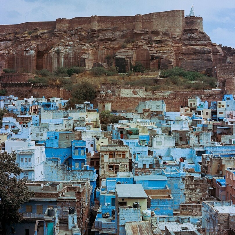 【5月7日 AFP】インド西部ラジャスタン(Rajasthan)州の町ジョドプール(Jodhpur)では、15世紀に建設されたメヘラーンガル城(Mehrangarh Fort)下の旧市街に青い家屋が連なる。かつて戦渦の際、略奪者から家を守るためにカースト制の上位階級を示す青を壁に塗ったものだが、その名残は今や町の特色となっている。(c)AFP