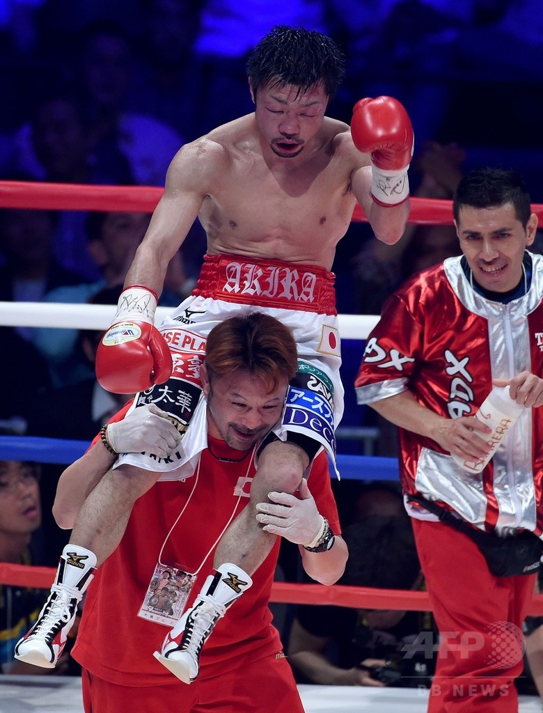 これに先立ち同会場では、IBF世界ライトフライ級タイトルマッチ12回戦が行われ、八重樫東(Akira Yaegashi)がマルティン・テクアペトラ(Martin Tecuapetla、メキシコ)を相手に2-1の判定勝ちを収め、こちらも初防衛を果たした。(c)AFP