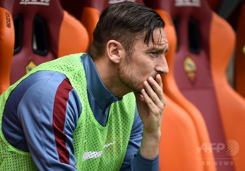 39歳のトッティは、ACミラン(AC Milan)のパオロ・マルディーニ(Paolo Maldini、647試合)、インテル(Inter Milan)のハビエル・サネッティ(Javier Zanetti、615試合)に続き、セリエA通算出場数で歴代3位につけている。(c)AFP
