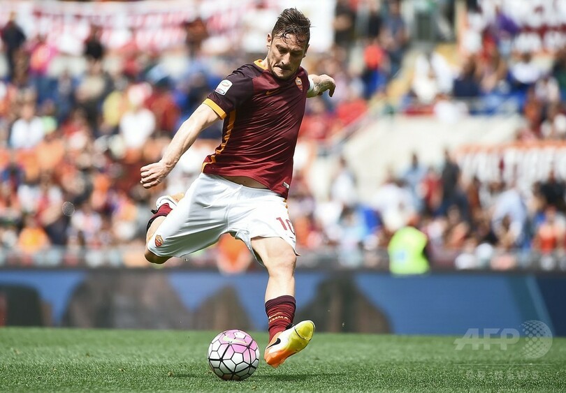 39歳のトッティは、ACミラン(AC Milan)のパオロ・マルディーニ(Paolo Maldini、647試合)、インテル(Inter Milan)のハビエル・サネッティ(Javier Zanetti、615試合)に続き、セリエA通算出場数で歴代3位につけている。(c)AFP