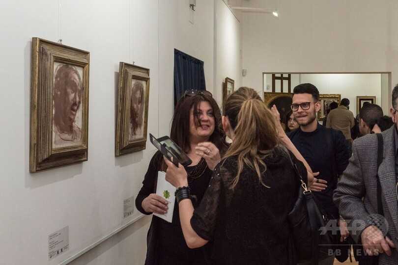 展示された約100点の絵画は、カラブリア州を拠点とする犯罪組織「ヌドランゲタ(Ndrangheta)」のボスが所有し、その後裁判所に押収されたもの。スペイン出身の巨匠サルバドール・ダリ(Salvador Dali)の作品2点も含まれているという。(c)AFP