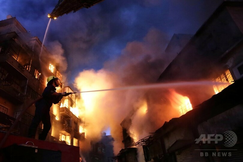 地元消防当局によると、正午ごろまでに火は鎮火した。警官と消防士16人も煙を吸い込んだという。(c)AFP