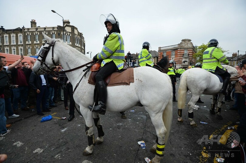 警察当局は、警察官と一般市民のそれぞれ1人が負傷したと発表し、事件についてこれから捜査を行うと話している。試合は3-2でウェストハムが勝利した。(c)AFP/Tom WILLIAMS