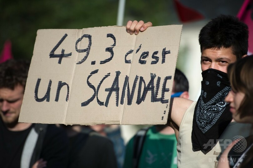 【5月11日 AFP】フランソワ・オランド(Francois Hollande)大統領(61)の仏社会党(PS)政権は10日、労働法改正案を議会での採決を経ずに強行通過させた。これを受けて議会で12日に内閣不信任決議案の採決が行われる。労働法改正案をめぐっては、反対派による大規模な街頭デモが2か月にわたって行われていた。