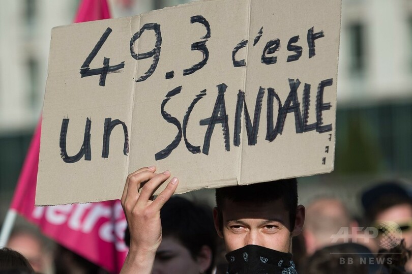 【5月11日 AFP】フランソワ・オランド(Francois Hollande)大統領(61)の仏社会党(PS)政権は10日、労働法改正案を議会での採決を経ずに強行通過させた。これを受けて議会で12日に内閣不信任決議案の採決が行われる。労働法改正案をめぐっては、反対派による大規模な街頭デモが2か月にわたって行われていた。
