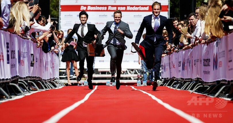 スーツで全力疾走! 恒例のチャリティーレース開催 オランダ
