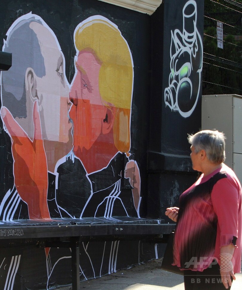 トランプ・プーチン両氏のキス壁画、リトアニア人の恐れ表す
