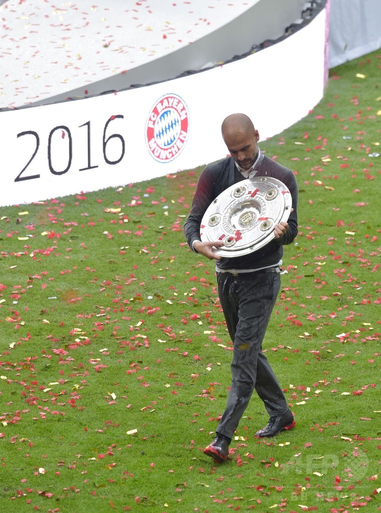 【5月15日 AFP】バイエルン・ミュンヘン(Bayern Munich)をリーグ史上初の4連覇へ導き、今季限りで退任するジョゼップ・グアルディオラ(Josep Guardiola)監督が14日、3年に及ぶドイツ・ブンデスリーガ1部での戦いを「ビールかけ」で締めくくった。