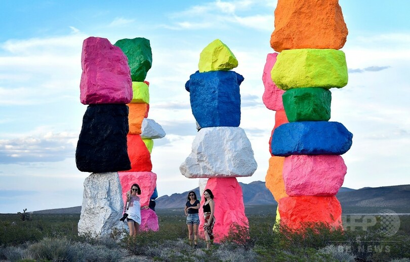 巨大でカラフルな積み岩が砂漠に出現、米ネバダ州