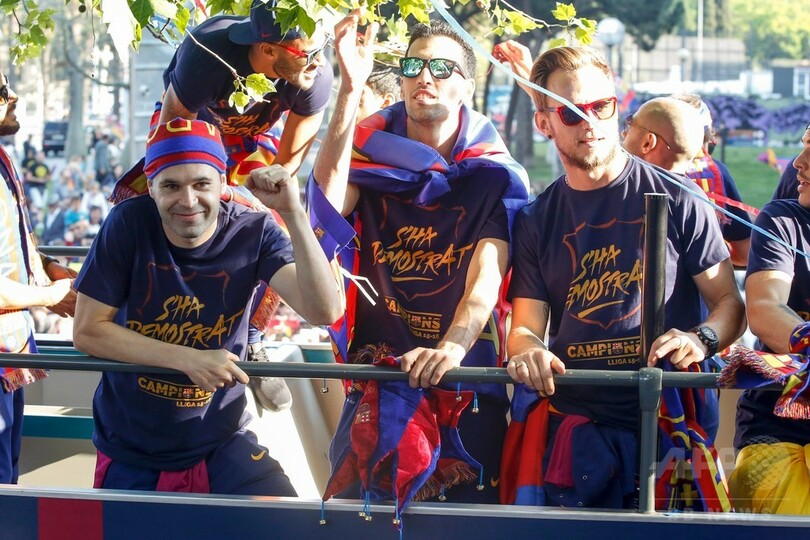 リーグ連覇のFCバルセロナ、市内で優勝パレード