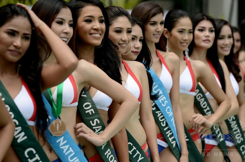【5月17日 AFP】フィリピンの首都マニラ(Manila)で16日、美人コンテスト「ミス・フィリピン・アース(Miss Philippines-Earth)」の報道向け写真撮影イベントが開かれ、出場者らが水着姿で登場した。