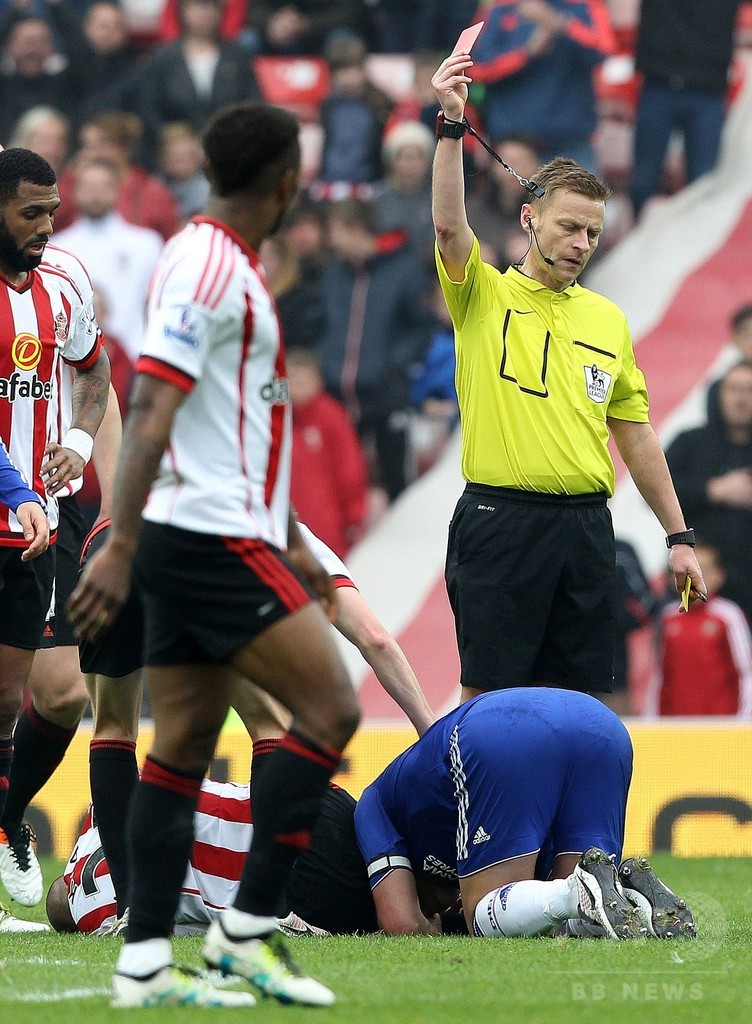 第37節のサンダーランド(Sunderland AFC)戦でレッドカードをもらったテリーは、リーグ最後の2節を欠場すると、15日のレスター・シティ(Leicester City)戦が終わった後、ファンの前で「残留したい」と語っていた。16日に本拠地スタンフォード・ブリッジ(Stamford Bridge)で行われるはずだったパーティーが中止になると、テリーがチェルシーに残ることは決定的になっていた。(c)AFP