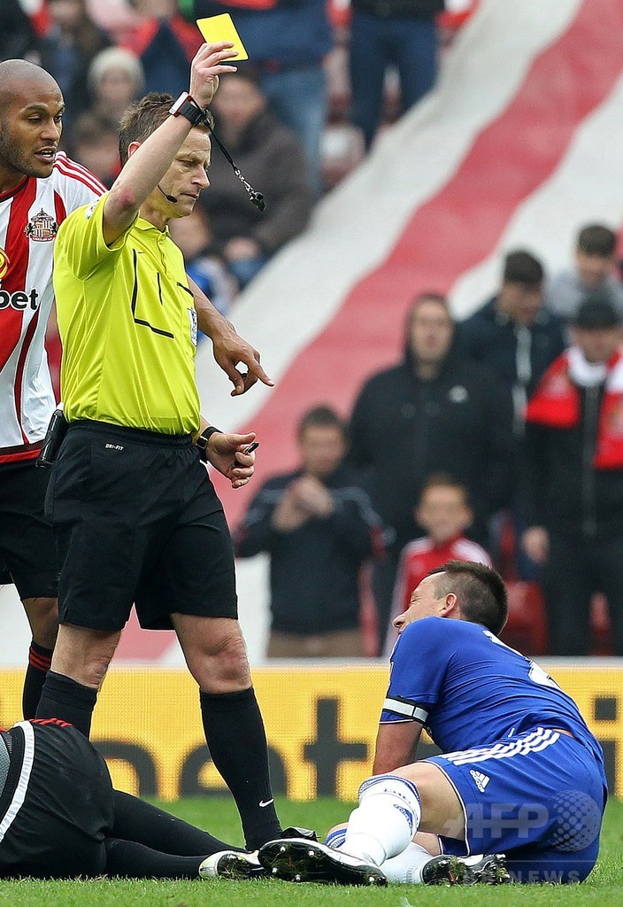 第37節のサンダーランド(Sunderland AFC)戦でレッドカードをもらったテリーは、リーグ最後の2節を欠場すると、15日のレスター・シティ(Leicester City)戦が終わった後、ファンの前で「残留したい」と語っていた。16日に本拠地スタンフォード・ブリッジ(Stamford Bridge)で行われるはずだったパーティーが中止になると、テリーがチェルシーに残ることは決定的になっていた。(c)AFP
