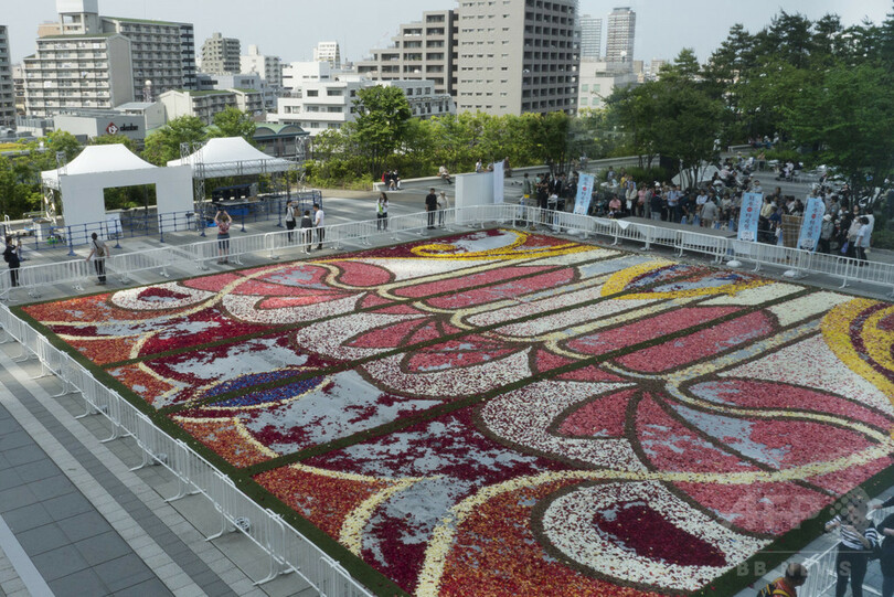 【5月19日 AFPBB News】日本とベルギーの国交150周年を記念し18日、東京都墨田区の東京スカイツリー(Tokyo Skytree)に、花びらを敷き詰めた巨大な「フラワーカーペット」がお目見えした。