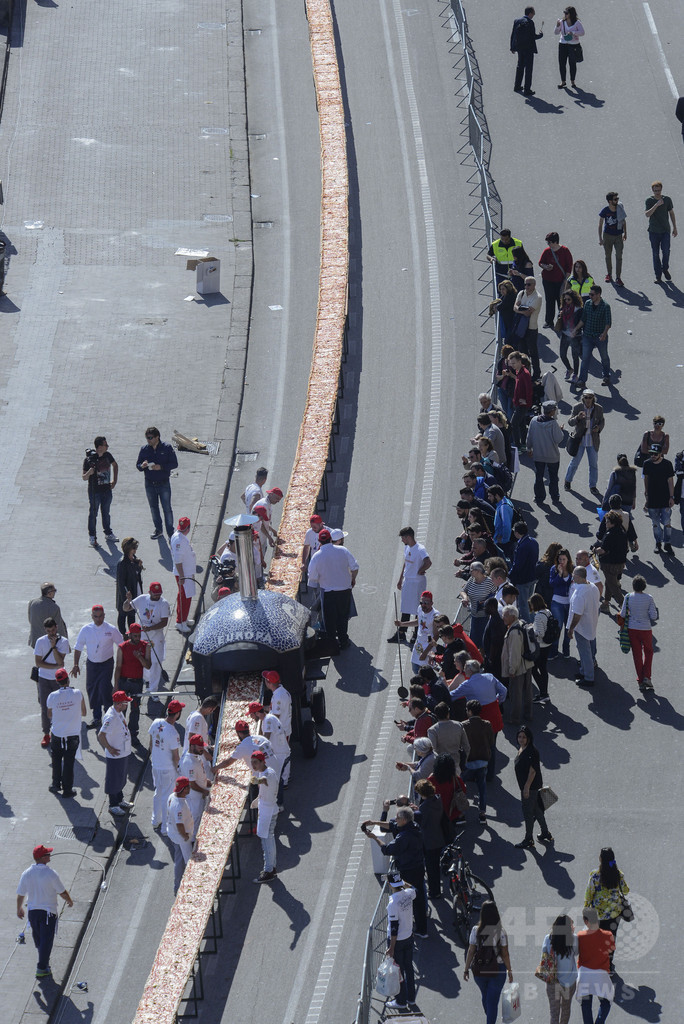 【5月20日 AFP】イタリア・ナポリ(Naples)で18日、長さ1853.88メートルのピザが作られ、ギネス公式ホームページによると、これまでのギネス世界記録(Guinness World Records)を破り世界最長のピザとなった。