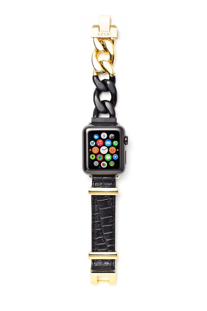 ストラップはブラック×シルバーとブラック×ゴールドの2種類で、38mmと42mmの「アップル ウォッチ」に対応。6月8日から伊勢丹新宿店で先行発売、6月11日より青山のフラッグシップストアとsacai DOVER STREET MARKET GINZA、海外では6月から展開予定だ。