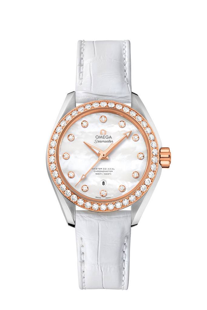 光沢が美しく深みを感じるマザーオブパールのダイアルと、選び抜かれたダイヤモンドの輝きが美しい「シーマスター アクアテラ」レディスコレクション。自分に似合うスタイルを知るマチュアな女性に向けて、豊富な素材、カラーバリエーション、34mmと38.5mmのケース径で展開している。