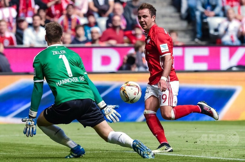 23歳のゲッツェは、リーグ史上初の4連覇を果たしたバイエルンが3-1で勝利を収めたハノーバー96(Hannover 96)戦で負傷していた。(c)AFP