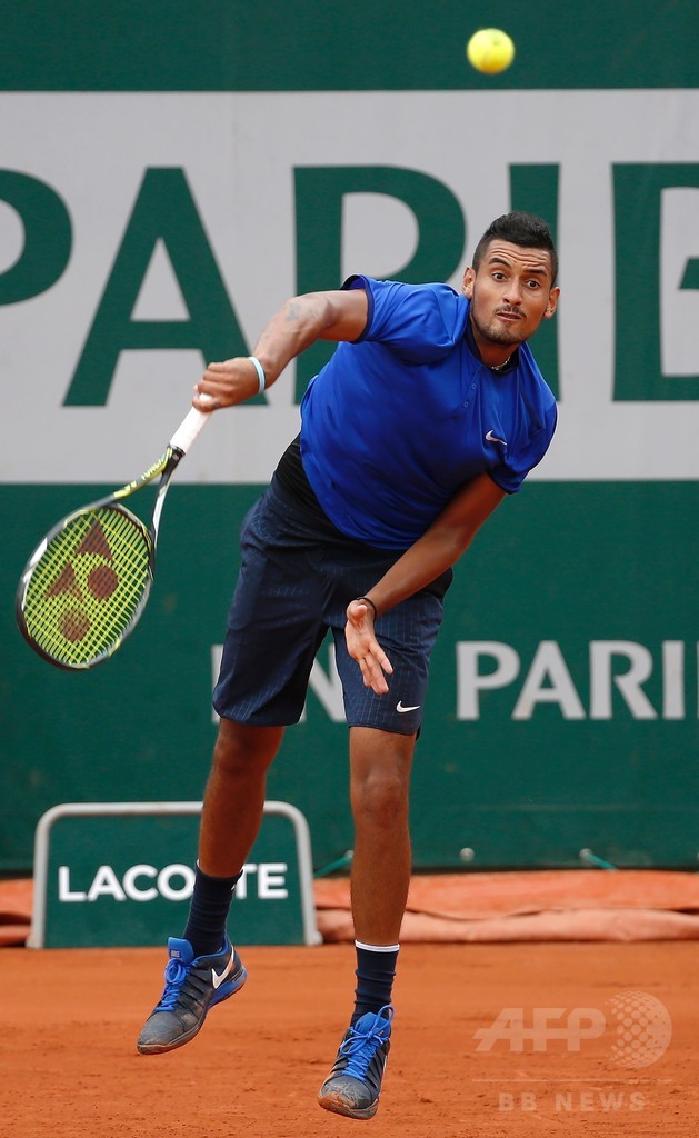 【5月23日 AFP】全仏オープンテニス(French Open 2016)は22日、男子シングルス1回戦が行われ、雨天による試合中断が相次ぐ中、大会第17シードのニック・キリオス(Nick Kyrgios、オーストラリア)は納得のいかない警告を受けながらも、7-6、7-6、6-4でマルコ・チェッキナート(Marco Cecchinato、イタリア)を下し、2回戦に駒を進めた。